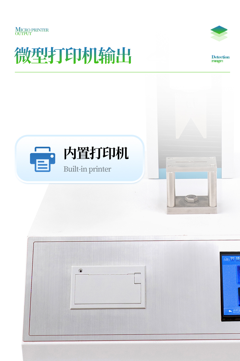 3、大觸摸屏中文顯示,友好人機界面操作。全自動完成測試。操作方便,具有測試數(shù)據(jù)統(tǒng)計處理功能,微型打印機輸出。